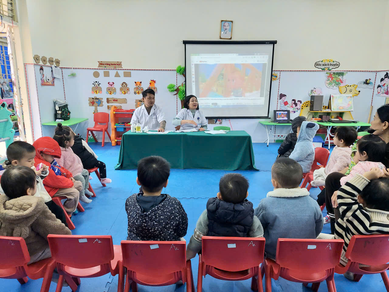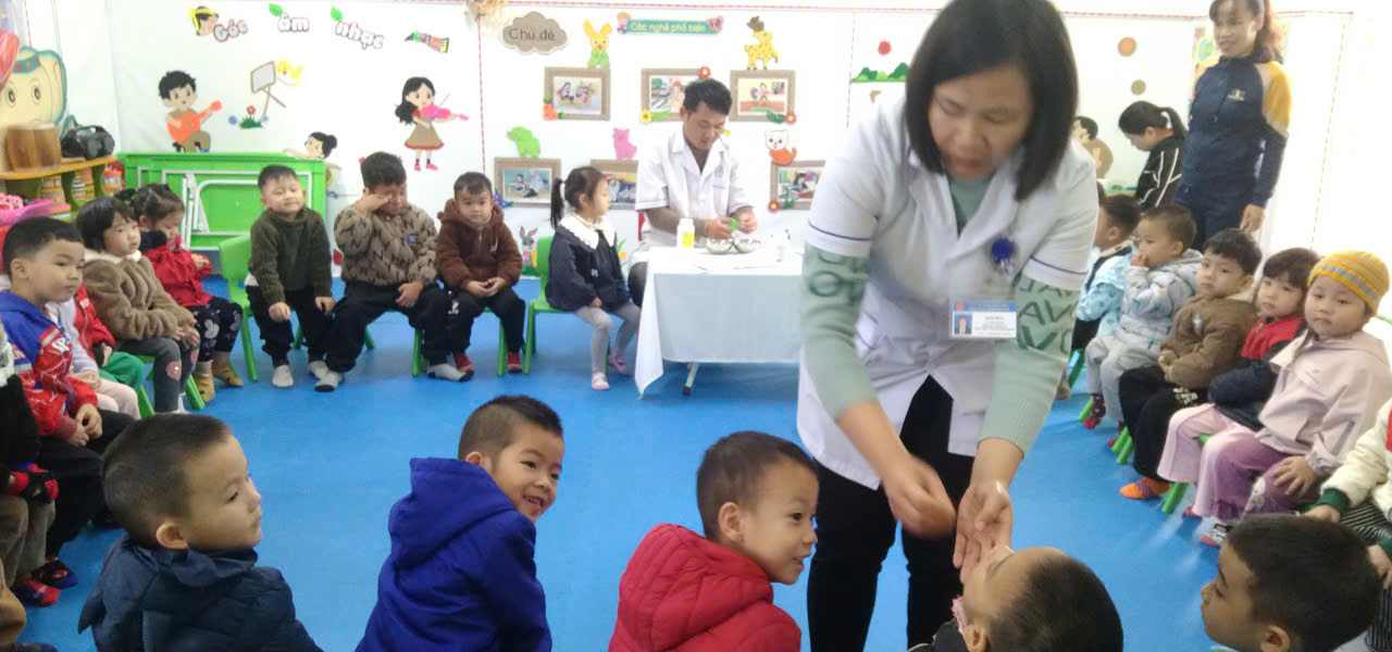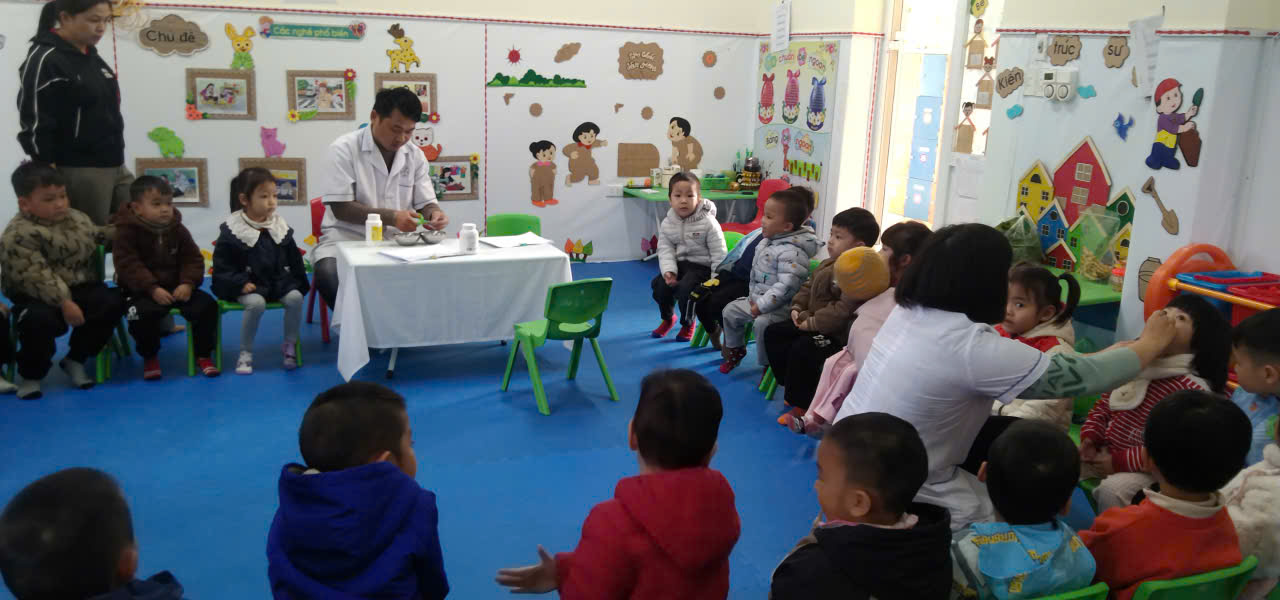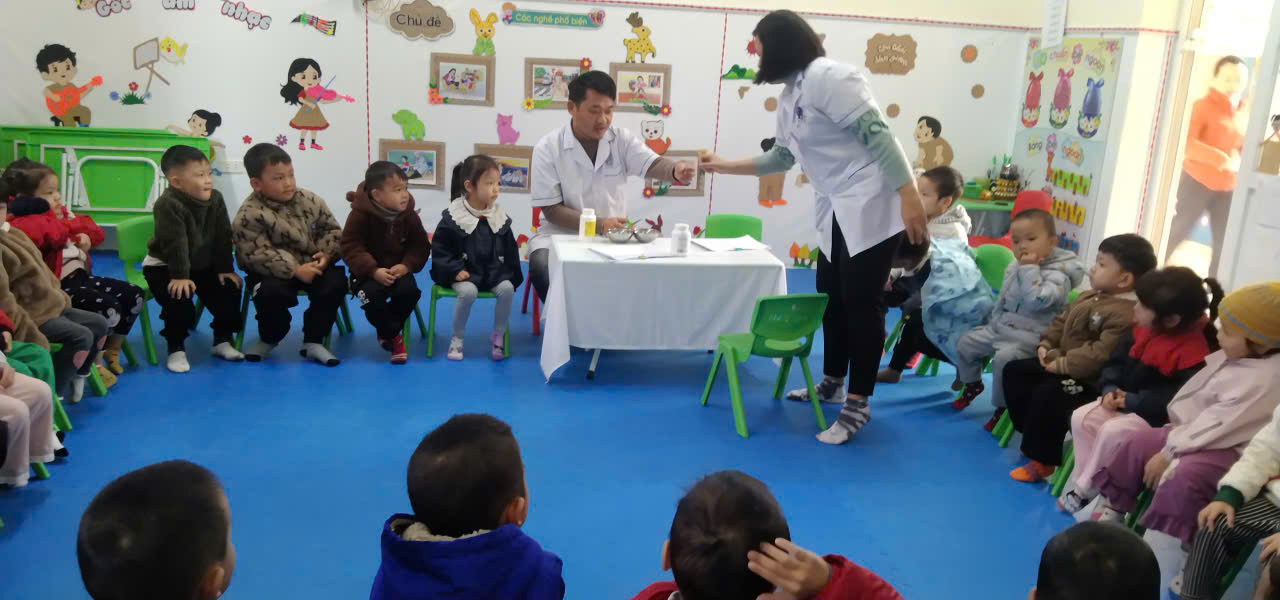 TRƯỜNG MẦM NON SƠN CA PHỐI HỢP VỚI ĐIỂM TRẠM Y TẾ HIM LAM PHƯỜNG ĐIỆN BIÊN PHỦ CHO TRẺ UỐNG VITAMIN A VÀ THUỐC TẨY GIUN ĐỊNH KỲ